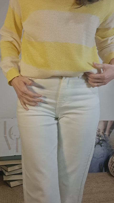 Texà de cama recta, de tiro alt, un bàsic a tot armari perquè queda bé amb tots els colors, i fa primavera. Porta dues butxaques al cul, dos al davant, boto i cremallera, és molt còmode, i agradable, perquè és de cotó.